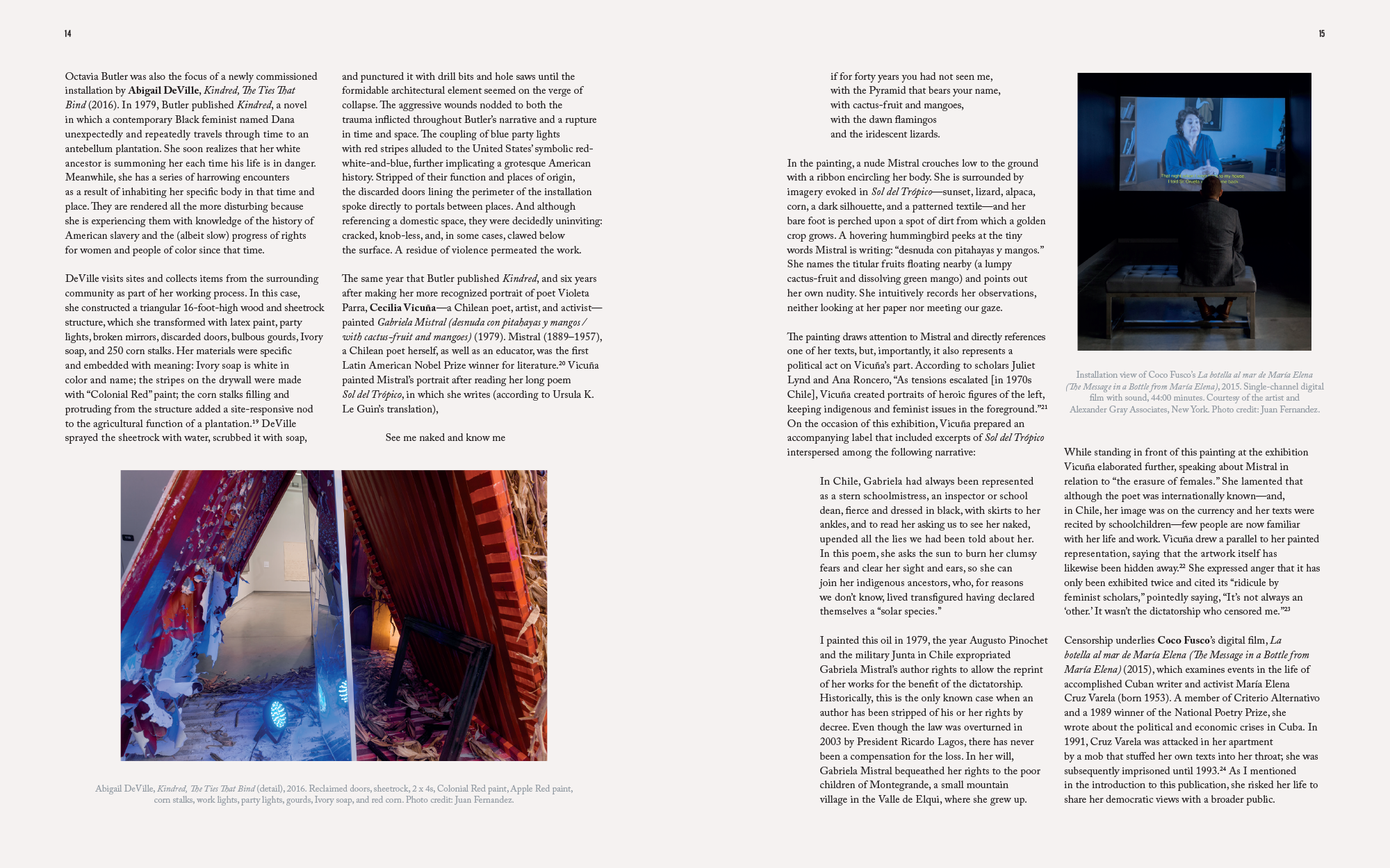 This catalogue is published in conjunction with Strange Oscillations and Vibrations of Sympathy, an exhibition of works by 21 women artists that acknowledge women writers Octavia Butler, A. S. Byatt, María Elena Cruz Varela, Emily Dickinson, Zora Neale Hurston, Clarice Lispector, Gabriela Mistral, Toni Morrison, Alejandra Pizarnik, Mary Shelley, Rebecca Solnit, Gertrude Stein, Sylvia Plath, Mary Wollstonecraft, and Virginia Woolf.